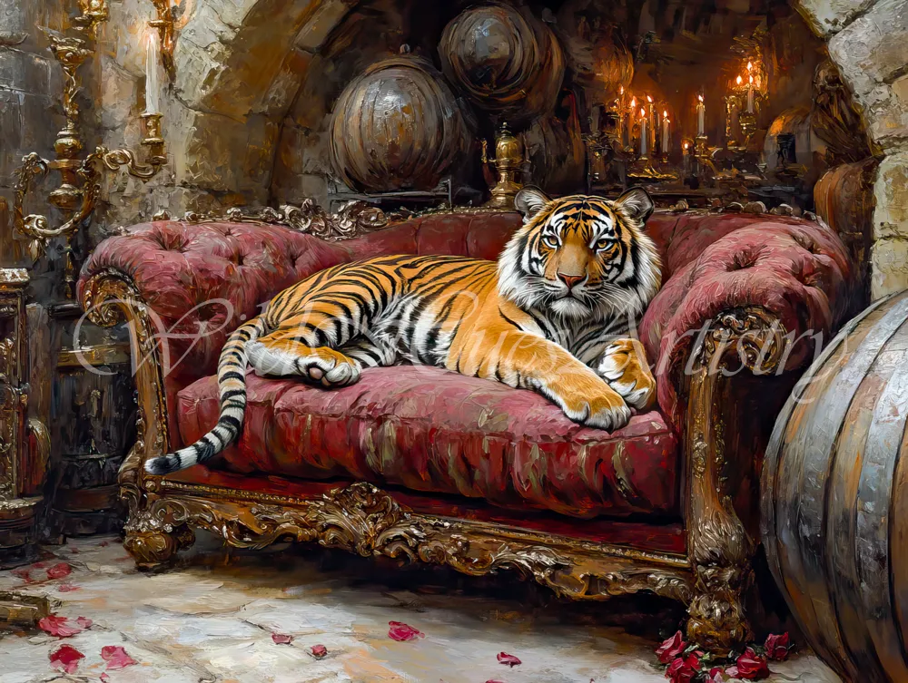 Just as a Tiger is rare and striking, this piece translates to a winery’s most opulent and complex vintages. Perfect for a bold, multifaceted wine that reveals different layers with every sip. The rich velvet and gold tones in the art mirror the luxury of a premium, hand-crafted release. Commercial & Label Licensing: Professional High Resolution 300DPI / 800MB+ TIFF master files available for winery labels, packaging, corporate branding, and large-scale murals. Please contact me directly for commercial/corporate licensing inquiries (ZAR18,000). Scroll down for Fine Art Canvas Prints for home and office collectors.